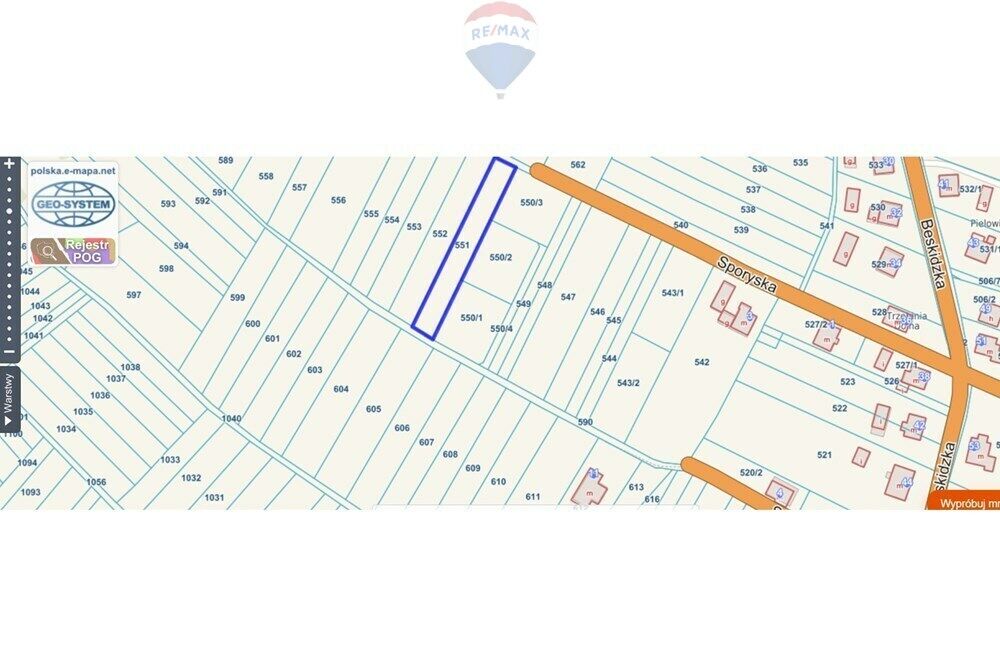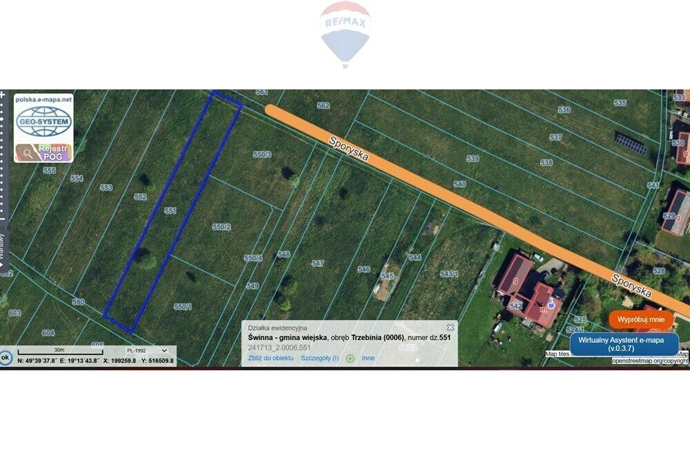 Działka nr 551, w całości budowlana, posiada kształt prostokąta o